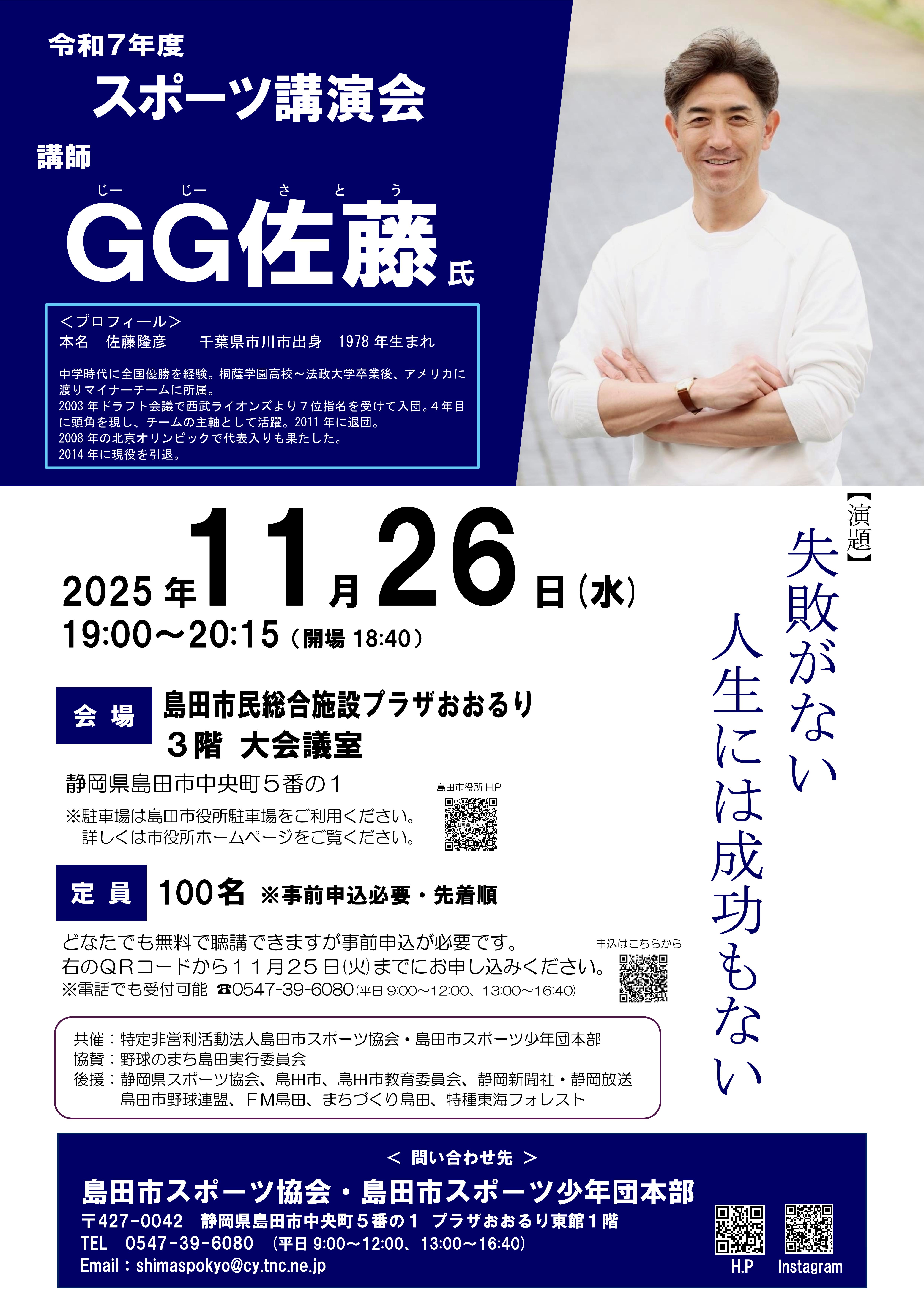 - 2025.11.26(水)GG佐藤さんスポーツ講演会の演題が決定しました。